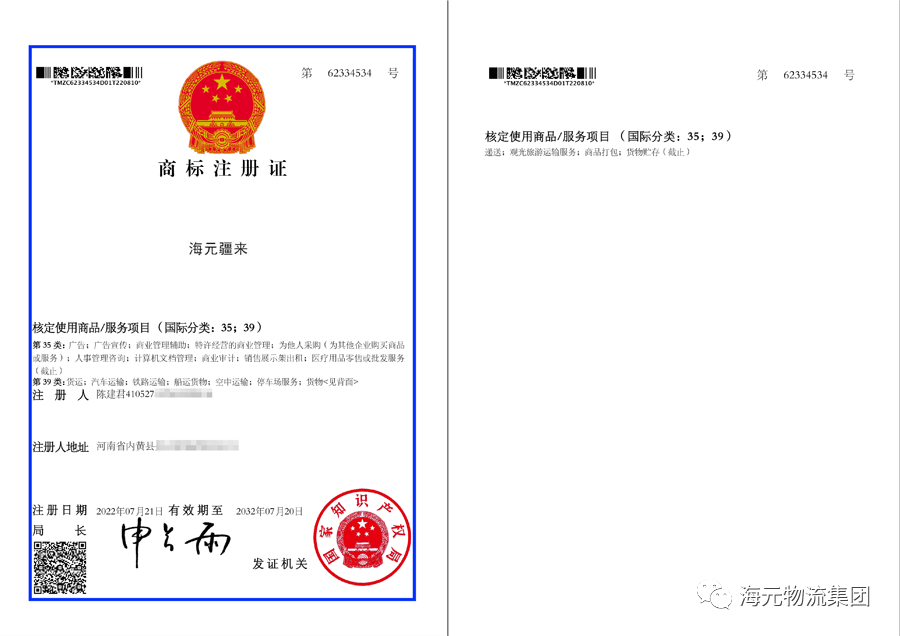 海元商标家族,涵盖商贸物流,不断延伸扩展,见证发展之路!